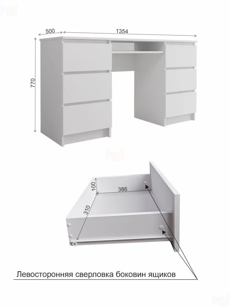 ширина 1354 мм, глубина 500 мм, высота 770 мм