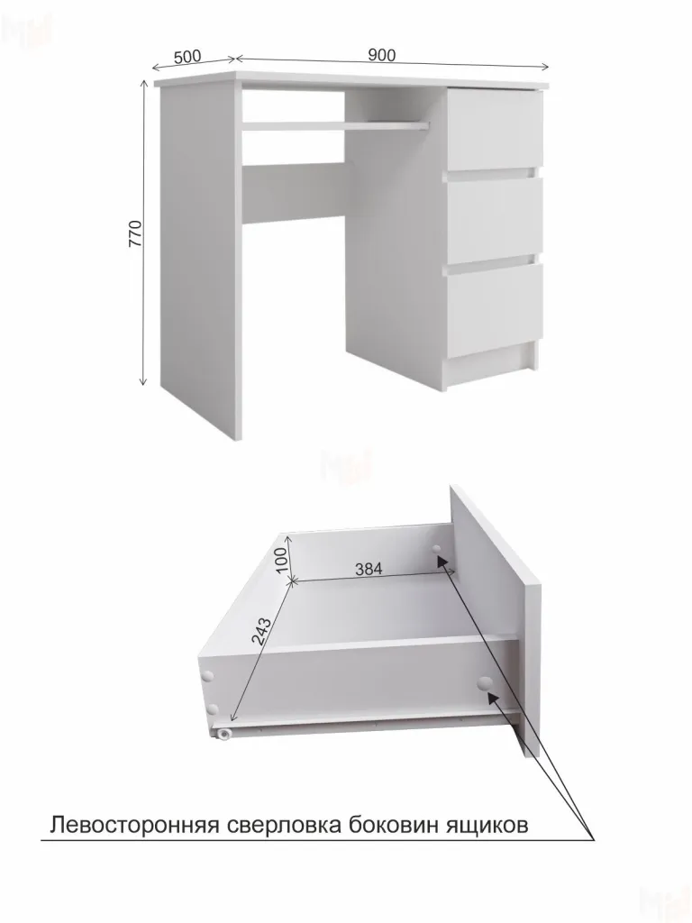 Стол может быть правым или левым (по расположению выдвижной доски)