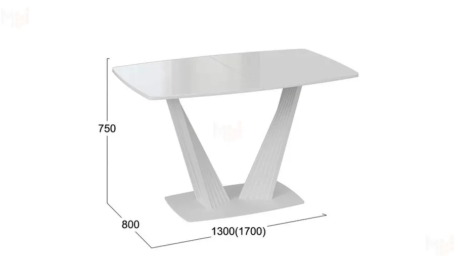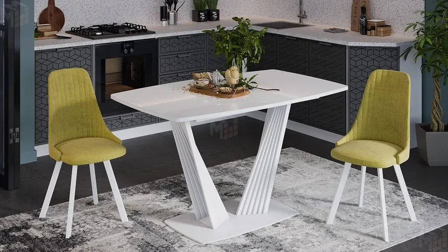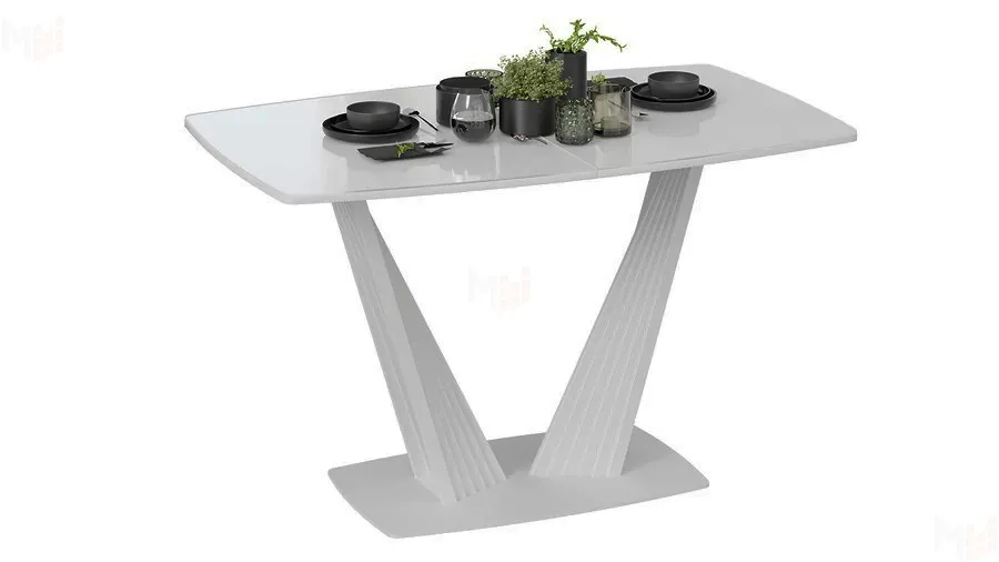 Стол раздвижной Фабио Тип 1 Белый матовый, Стекло глянцевое белое
