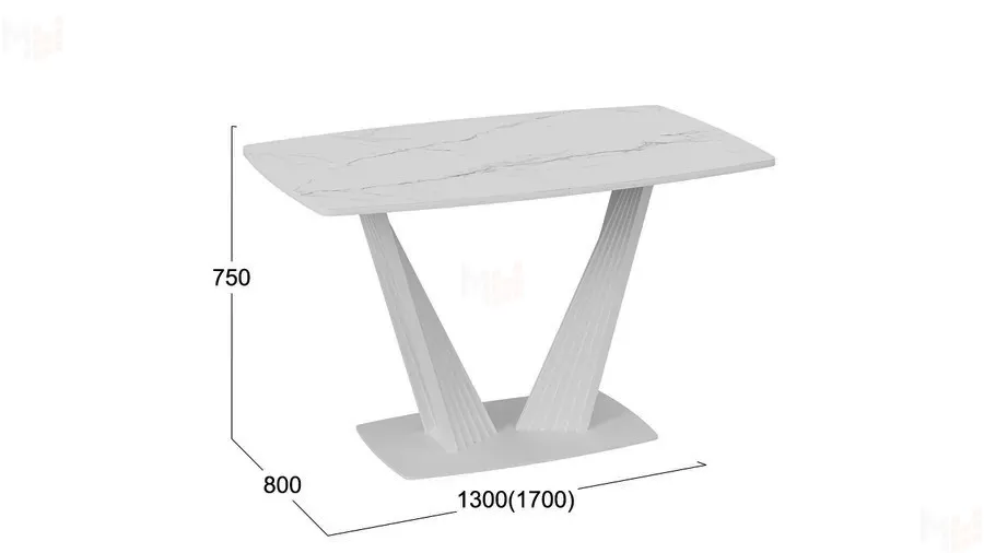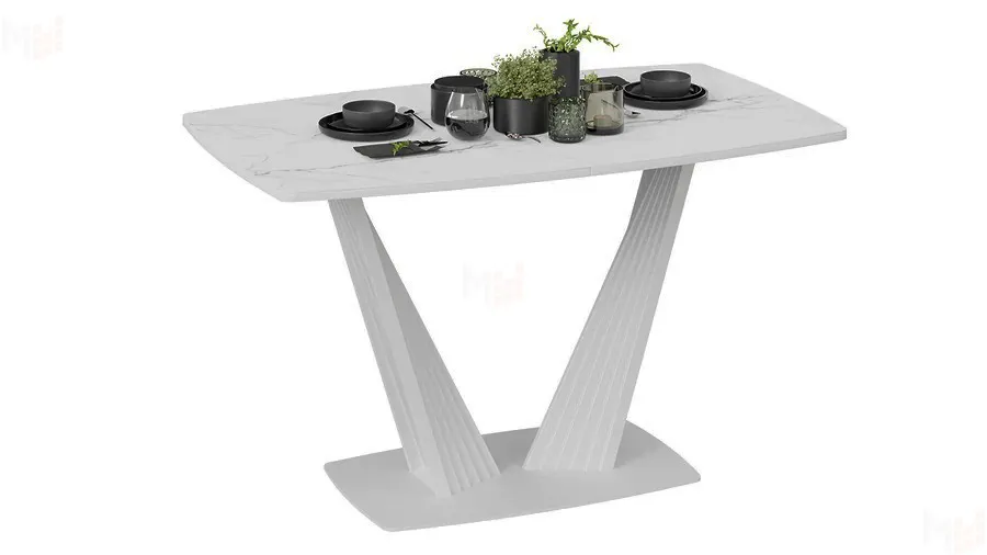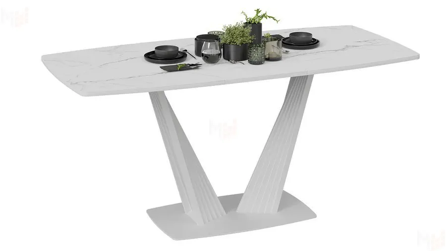 Стол раздвижной Фабио Тип 1 Белый матовый, Стекло матовое белый мрамор