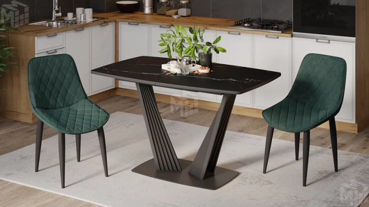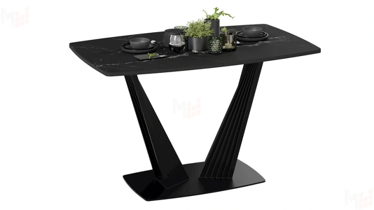 Стол раздвижной Фабио Тип 1 Черный муар, Стекло матовое черный мрамор