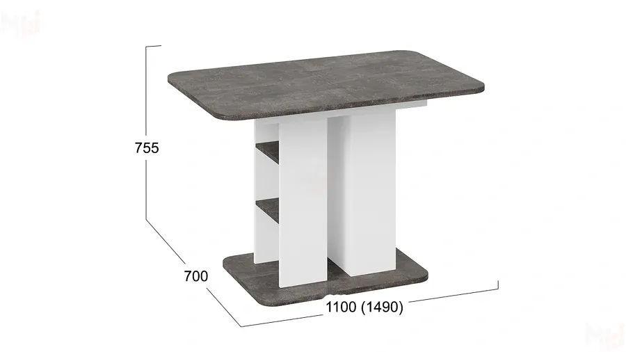 Стол раздвижной Мюнхен Тип 2 Белый Ясень, Ателье темный