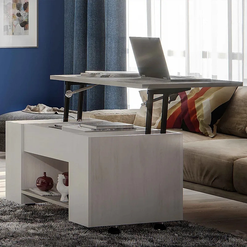Журнальный столик в гостиной – предмет постоянного использования. Возможность трансформировать его в рабочий позволит сэкономить на покупке письменного стола и с удобством разместиться с ноутбуком дома. Леон 219 Стол-трансформер – это уменьшенная версия Марсель 219 Стол-трансформер, в которую мне внесли некоторые улучшения эргономики и дизайна. Стол из коллекции Леон шириной всего 900 мм. Он комплектуется колесными опорами, благодаря чему приобретает мобильность в передвижении. Столешница в декоре Ателье светлый изготовлена из ЛДСП толщиной 22 мм и облицована кромкой ПВХ 2 мм, что обеспечивает ее надежность и высокую износоустойчивость.