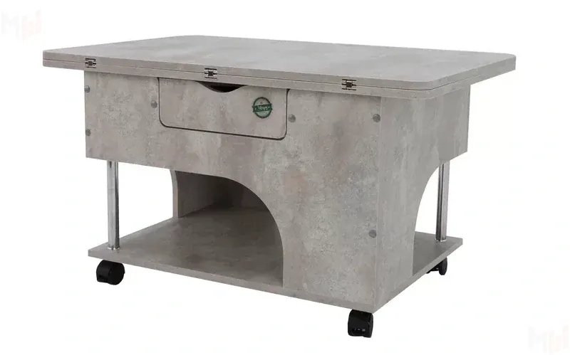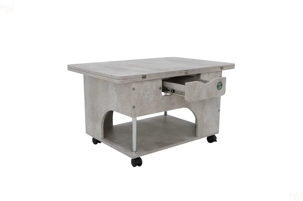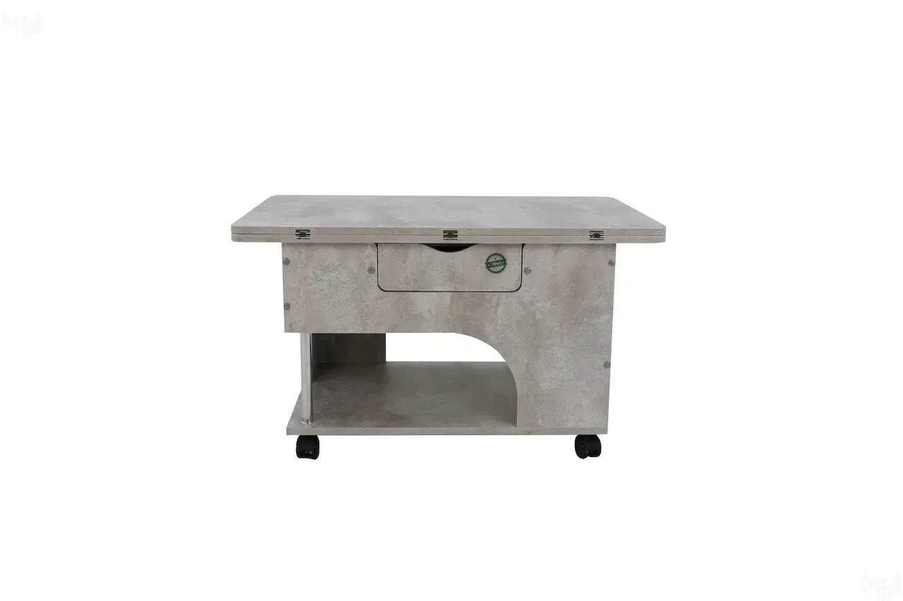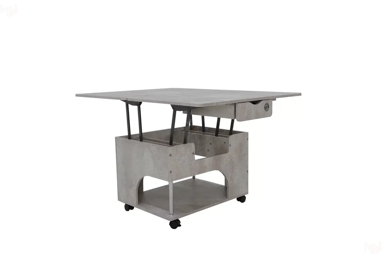Журнальный стол-трансформер Стэп — это умная экономия пространства! Простой в использовании механизм трансформации позволит Вам увеличить поверхность стола в два раза по площади и высоте и превратить журнальный стол в обеденный за считанные секунды. При раскладывании столешница поднимается вверх на упругих шарнирах, а из-под нее достается еще один небольшой столик на шарнирах чуть короче.