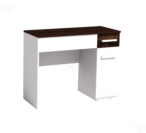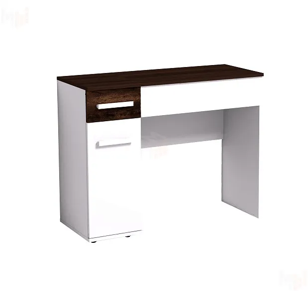 Сбоку – отделение с полками за распашной дверцей и выдвижным ящиком, фасад которого выполнен из ЛДСП цвета Орех Шоколадный. Закрытый столик можно использовать для работы на ноутбуке или с документами.