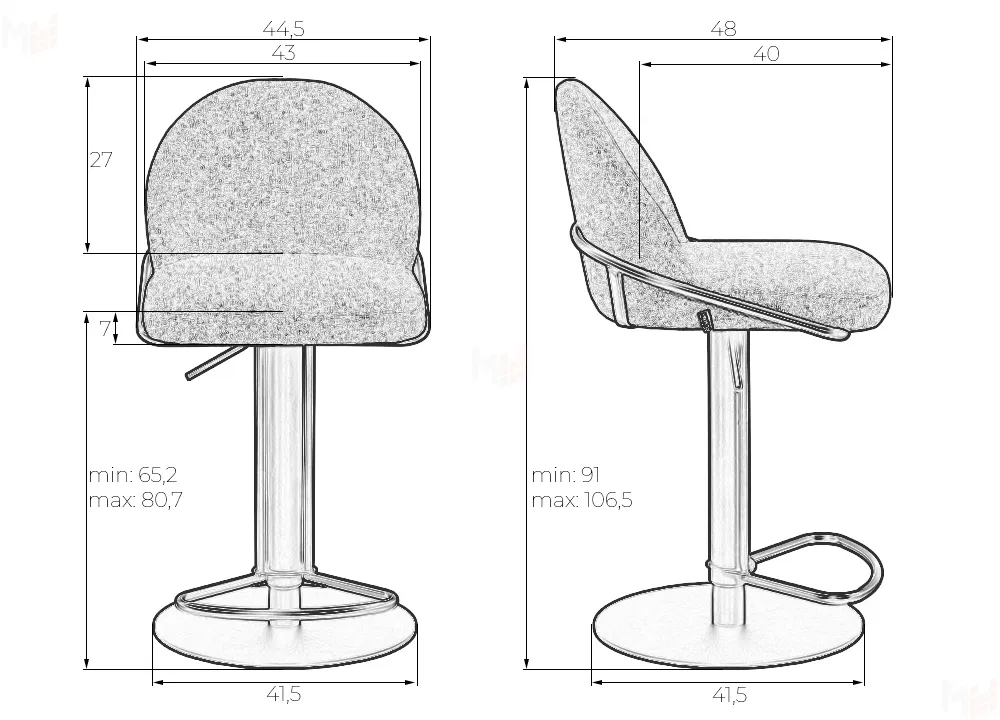 Стул барный DOBRIN OLIVER (серая ткань (FLY1347-17))