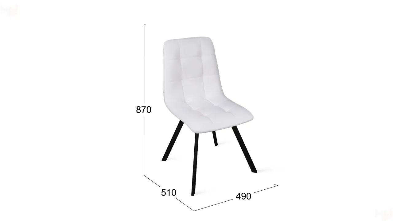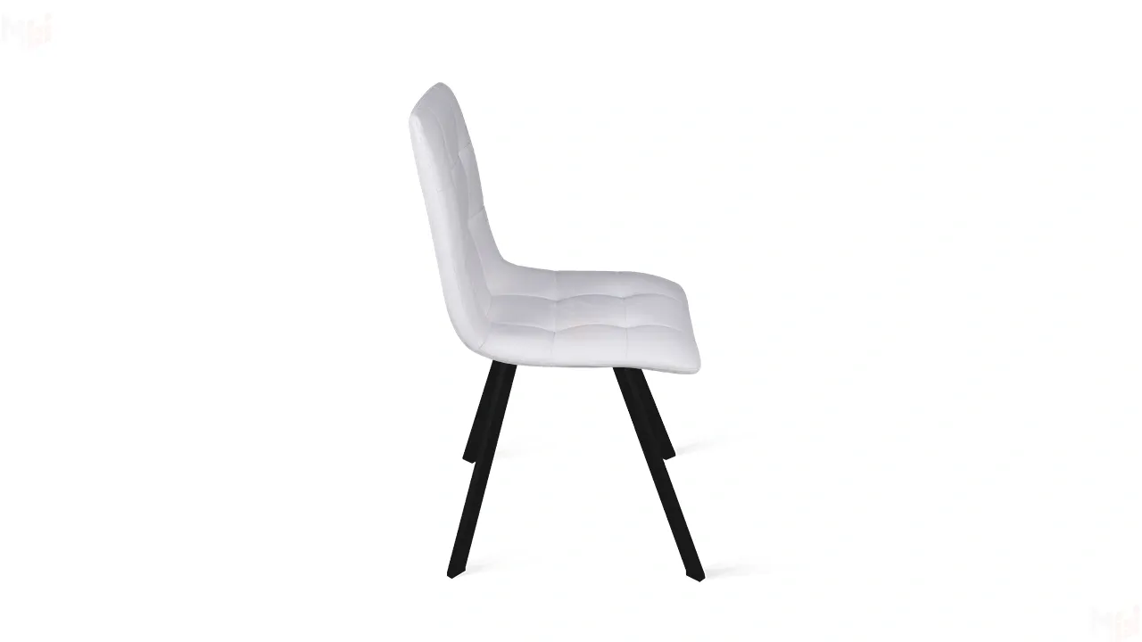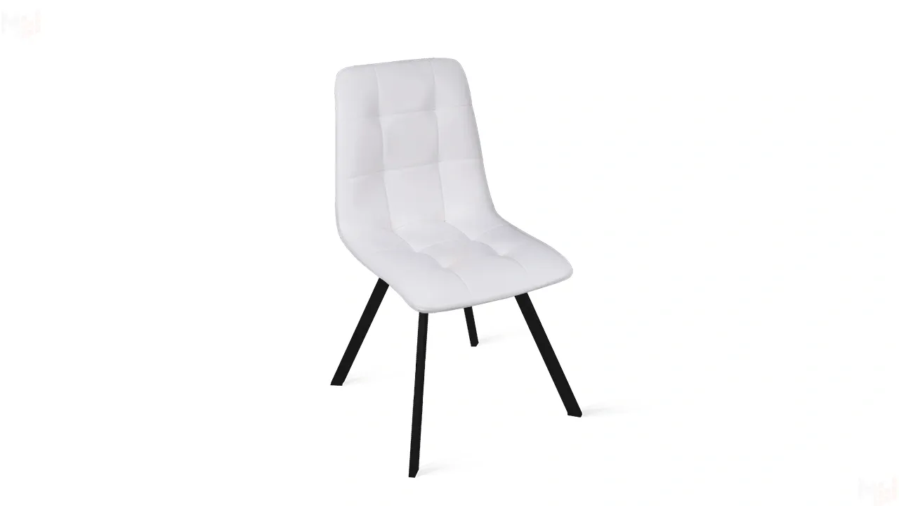Обивка изготовлена из кожзама, что придает стулу привлекательный внешний вид. Это современный полиуретановый материал, очень схожий по фактуре и внешнему виду с натуральной кожей. Отстрочка на мягком элементе в виде квадратов — это именно то, что нужно для создания стильного интерьера. Металлические ножки с порошковым покрытием обеспечивают надежную опору модели. Они расставлены под углом, что гарантирует максимальную устойчивость конструкции.