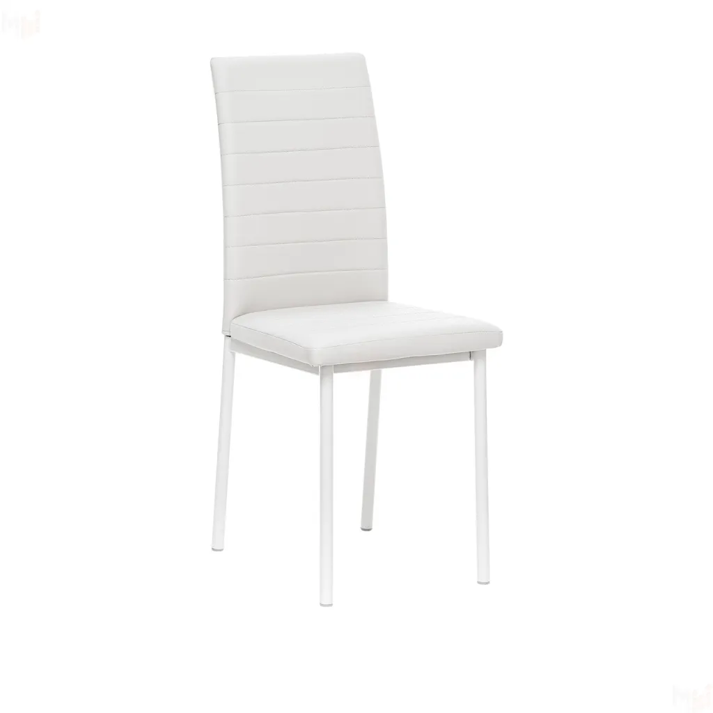 Классический практичный для дома или офиса. Стул на металлическом каркасе. Сидение и спинка стула мягкие, обитые эко кожей, с горизонтальными прострочками. Универсален, удобен в использовании, неприхотлив в уходе, достаточно износостоек.