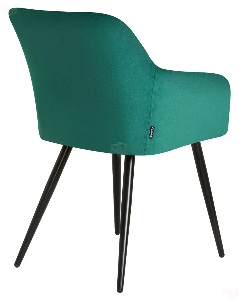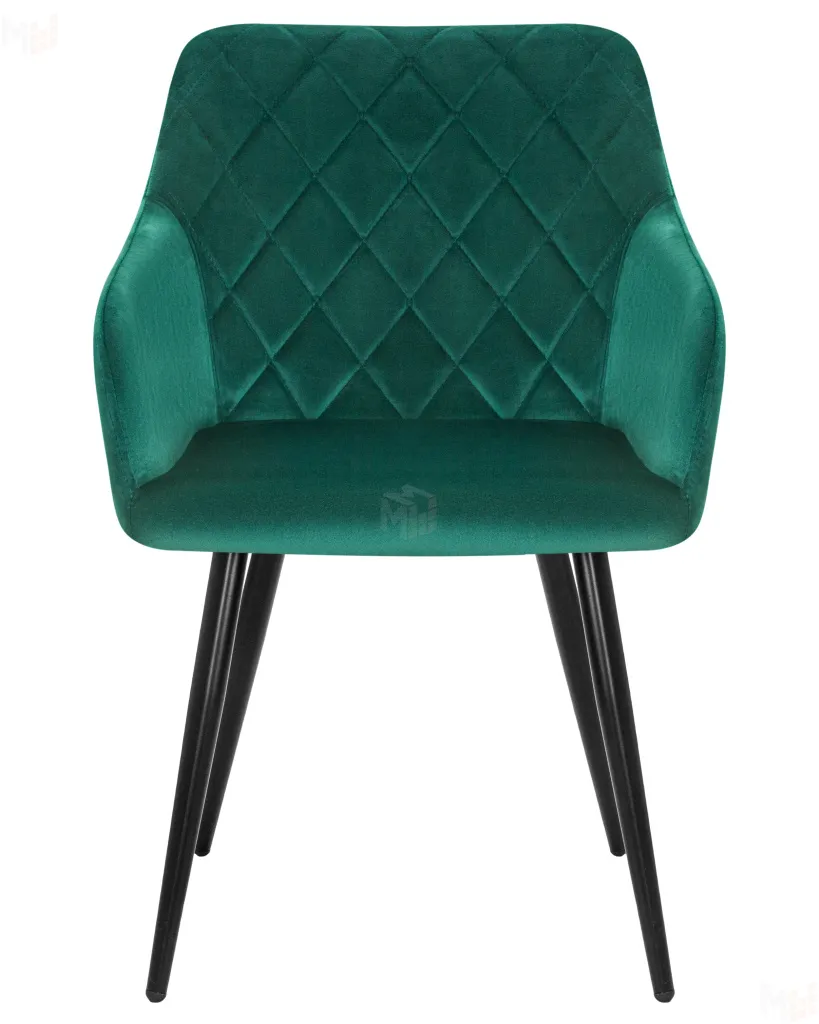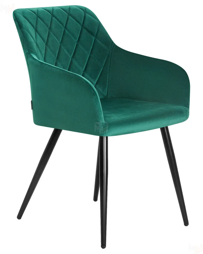 Стальные ножки черного матового цвета, ткань велюр зеленый.