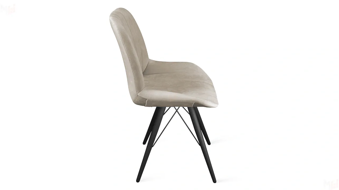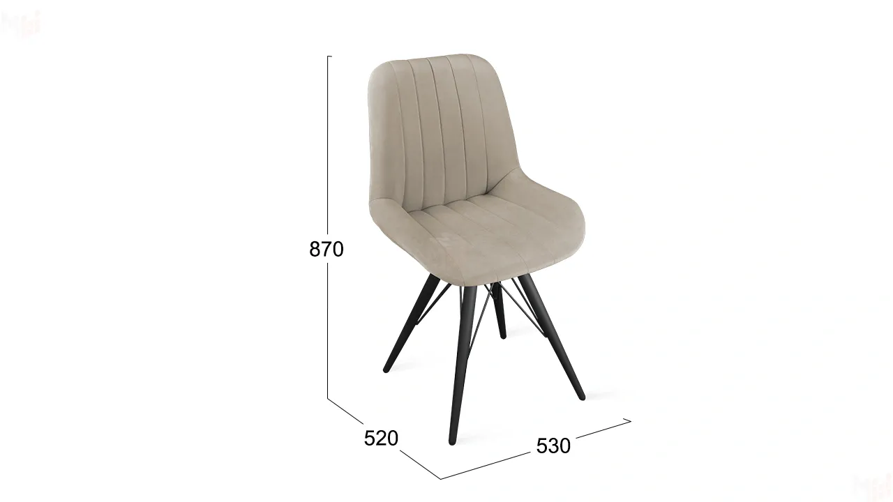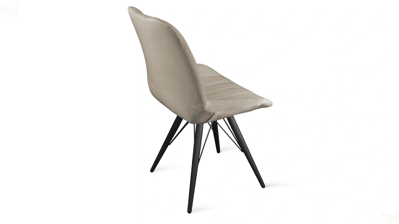 Стильная модель стула, при декорировании которого использован необычный дизайнерский прием: сиденье и спинка прострочены вертикальными полосами, создавая эффектный объем.