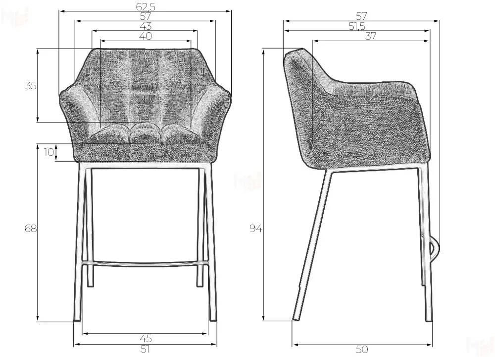 Стул полубарный DOBRIN LUCAS COUNTER (серая ткань (F-22))