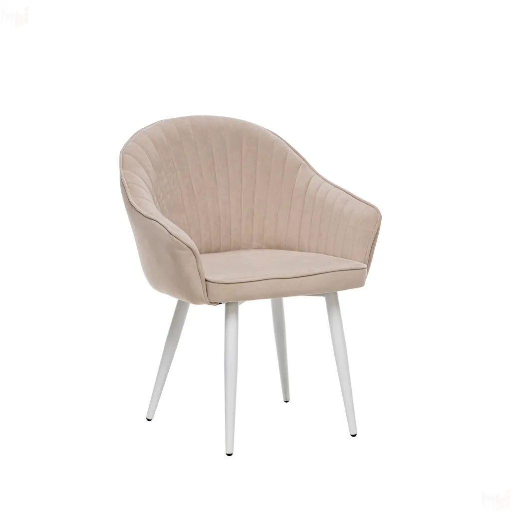Стул с подлокотниками Leset Вайд, каркас Белый, велюр Бежевый (Бежевый)