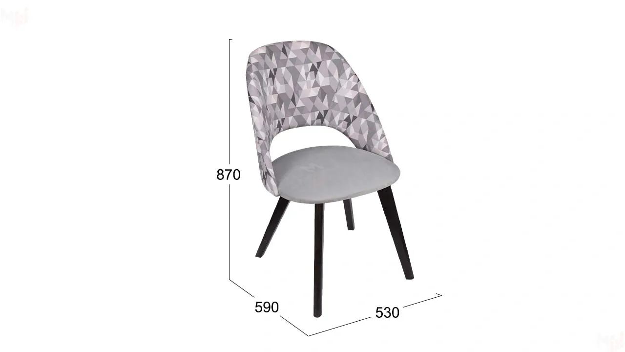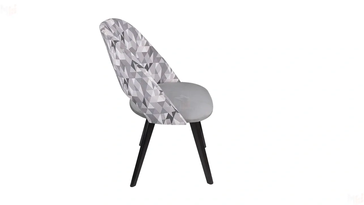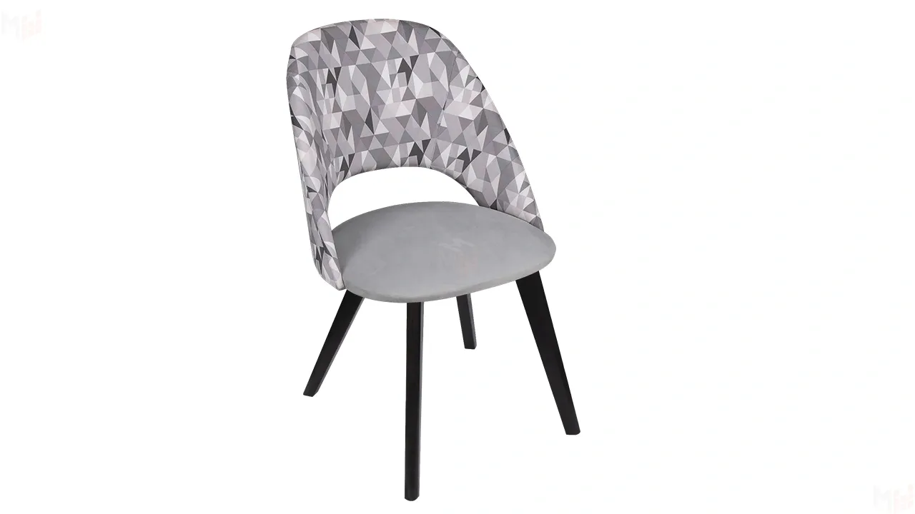 Спинка модели с легким геометрическим рисунком добавляет уникальности и оригинальности, а однотонная ткань на сиденье придает стулу элегантность и стиль.