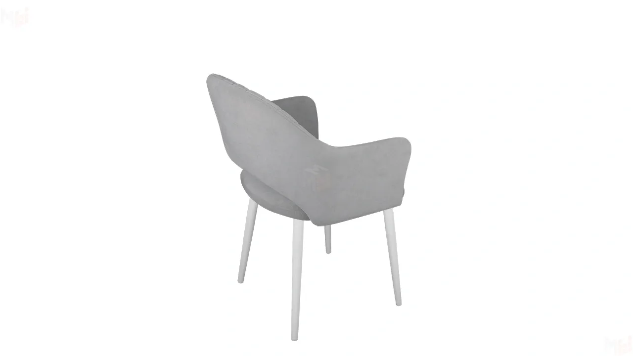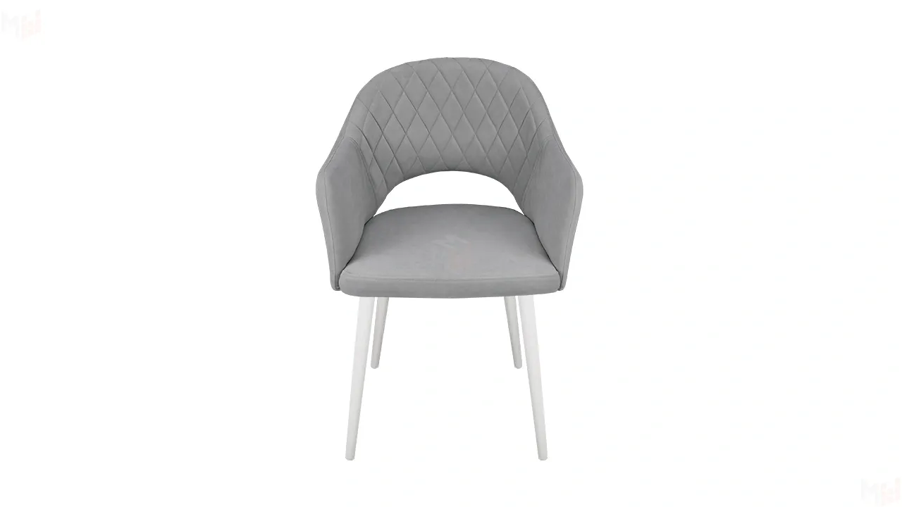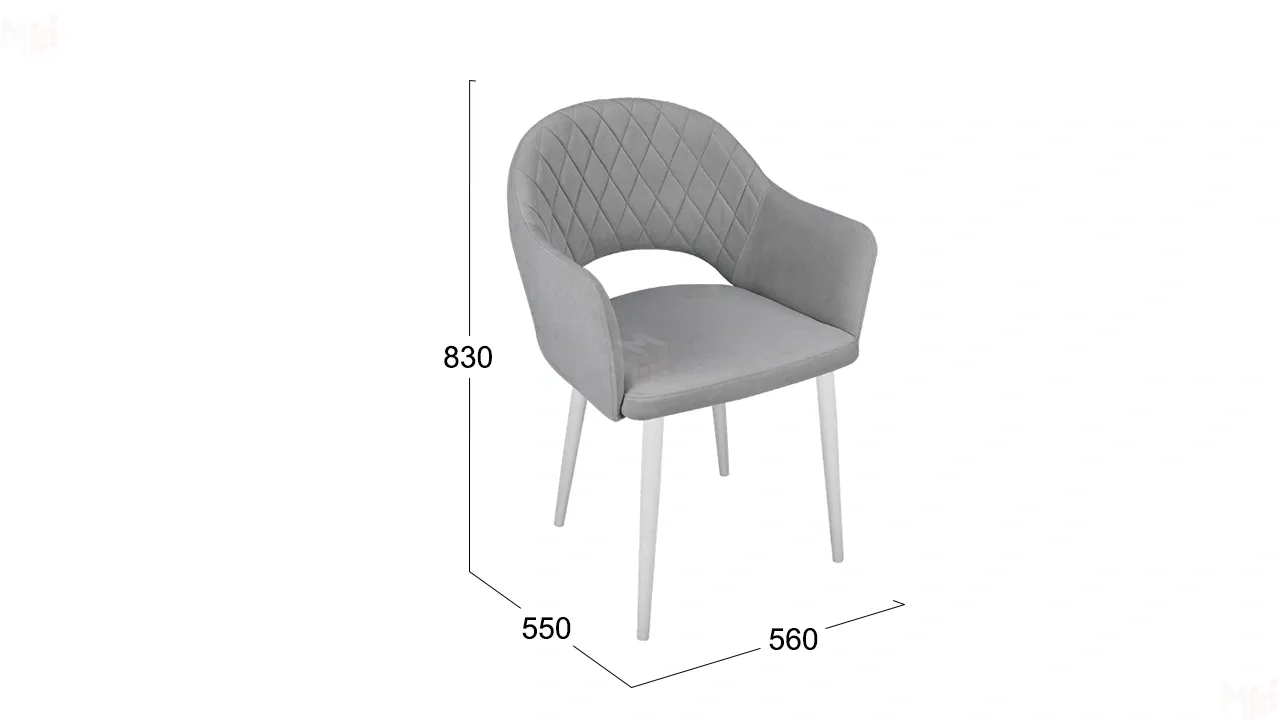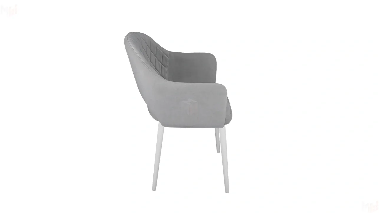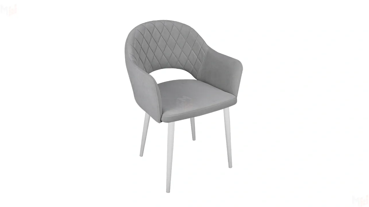 Модель с сиденьем и спинкой, плавно переходящей в подлокотники, дополнена велюровой обивкой со стежкой в форме небольших ромбов