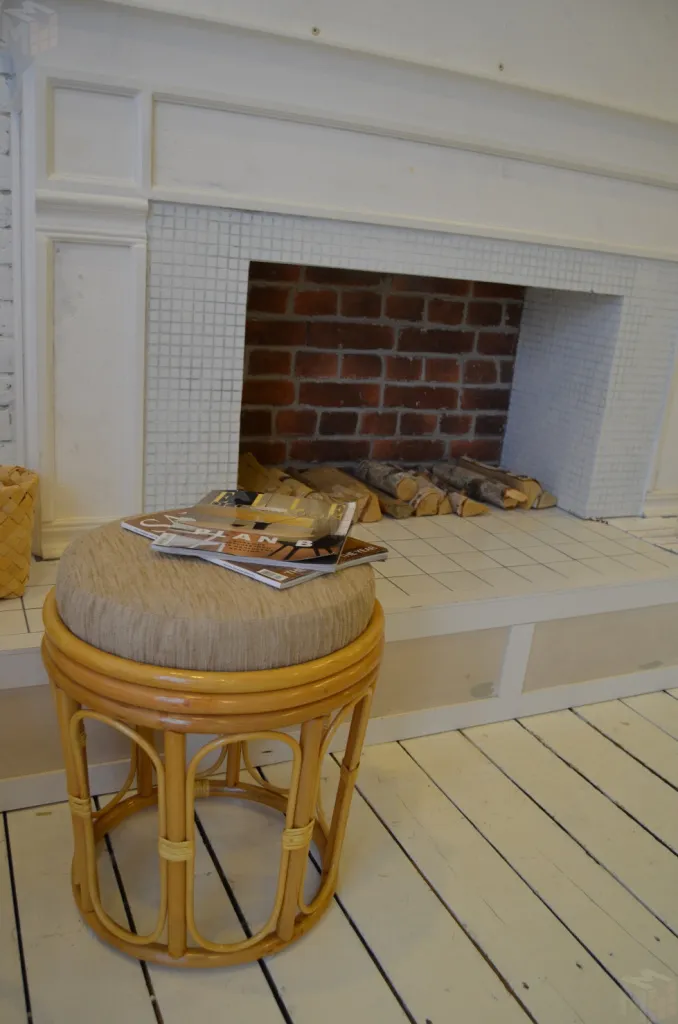 Табурет из ротанга с мягким сиденьем.