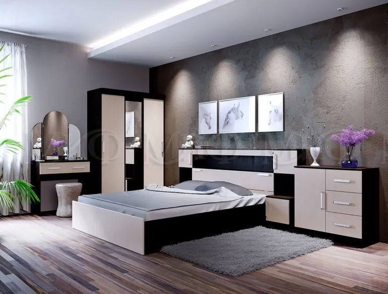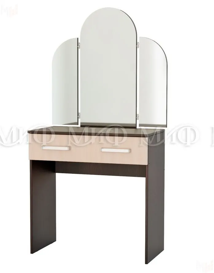 Трельяж состоит из туалетного столика с выдвижным ящиком и трех зеркал.