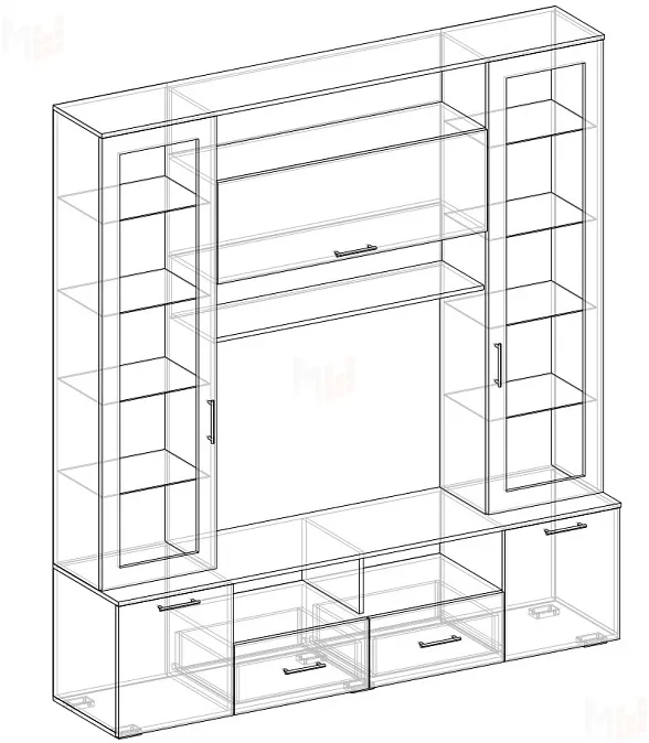 При меблировке гостиной важно найти баланс между стилем, эргономикой и практичностью. И рационально использовать имеющиеся квадратные метры. Центральная секция Виктория за 35 587 р. — яркое воплощение этого принципа. В модели сочетаются великолепная эстетика, высокое качество всех материалов и продуманная система хранения. Она не занимает слишком много места в комнате и не создает эффекта загромождения, но при необходимости у вас всегда будет удобный доступ ко всем хранящимся вещам. Также производитель Мебельмаркет сделал ставку на интересный дизайн, который хорошо будет гармонировать со многими популярными интерьерными стилями.