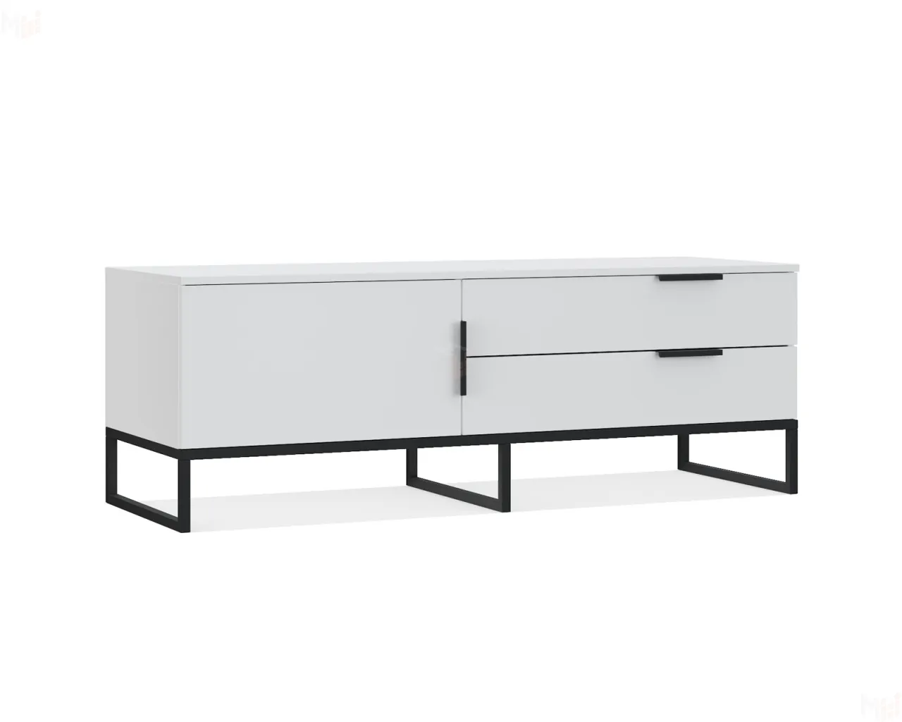 Тумба «Бруклин 2» выполнена из материала ЛДСП: ширина - 140 см, высота - 50 см, глубина - 51 см. В сочетании с металлическим профилем черного цвета добавит уют в интерьер. -