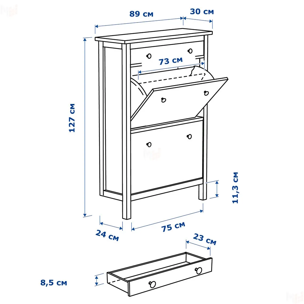 Галошница-обувница с 2 отделениями и 1 выдвижным ящиком, 89х31х128 см