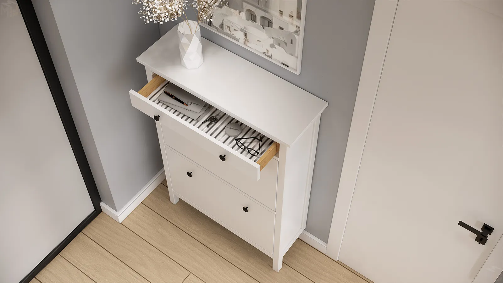 Тумба для обуви из массива Кымор 89 с ящиком, белая