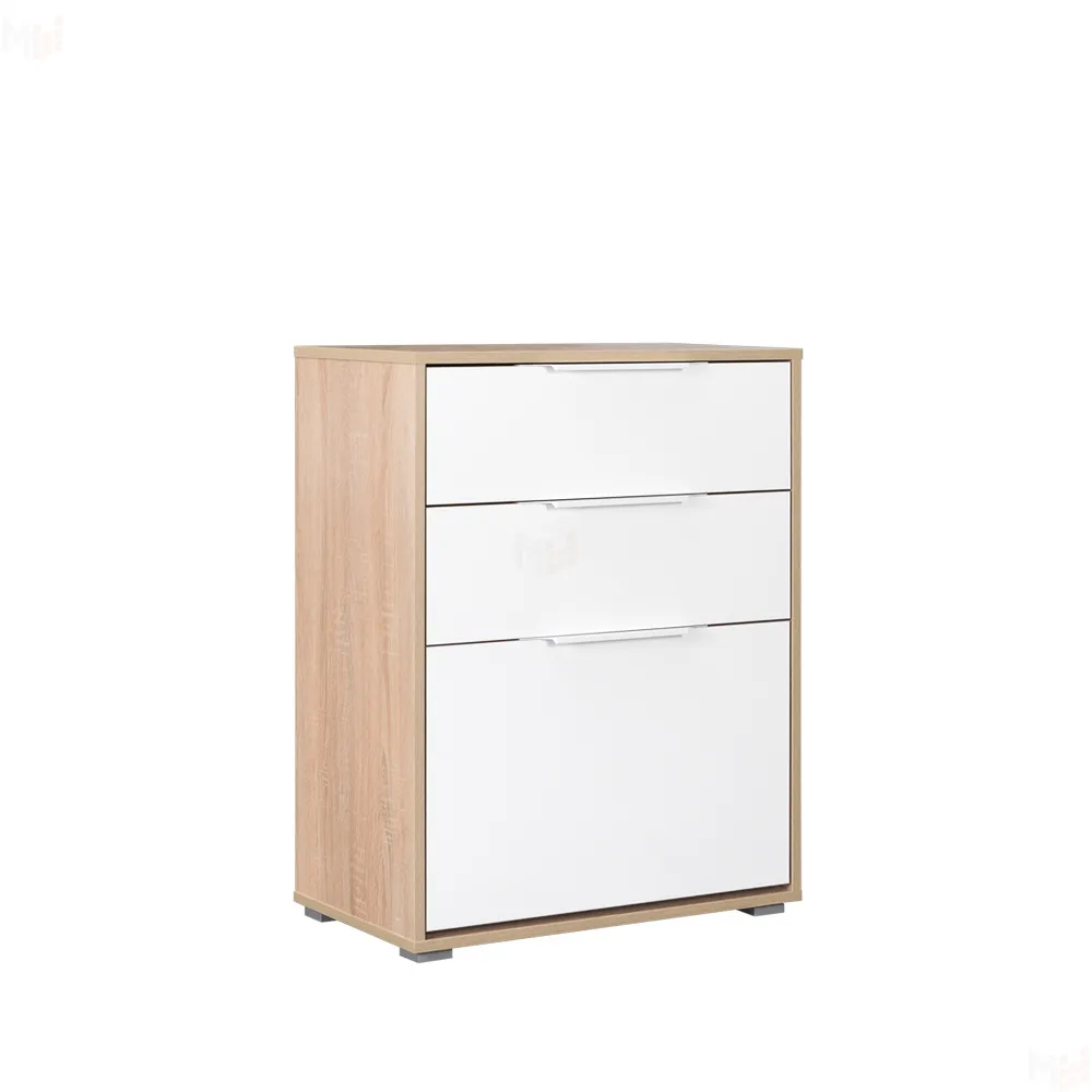 Каркас тумбы выполнен из ЛДСП Дуб сонома, фасады ЛДСП Белый премиум.
