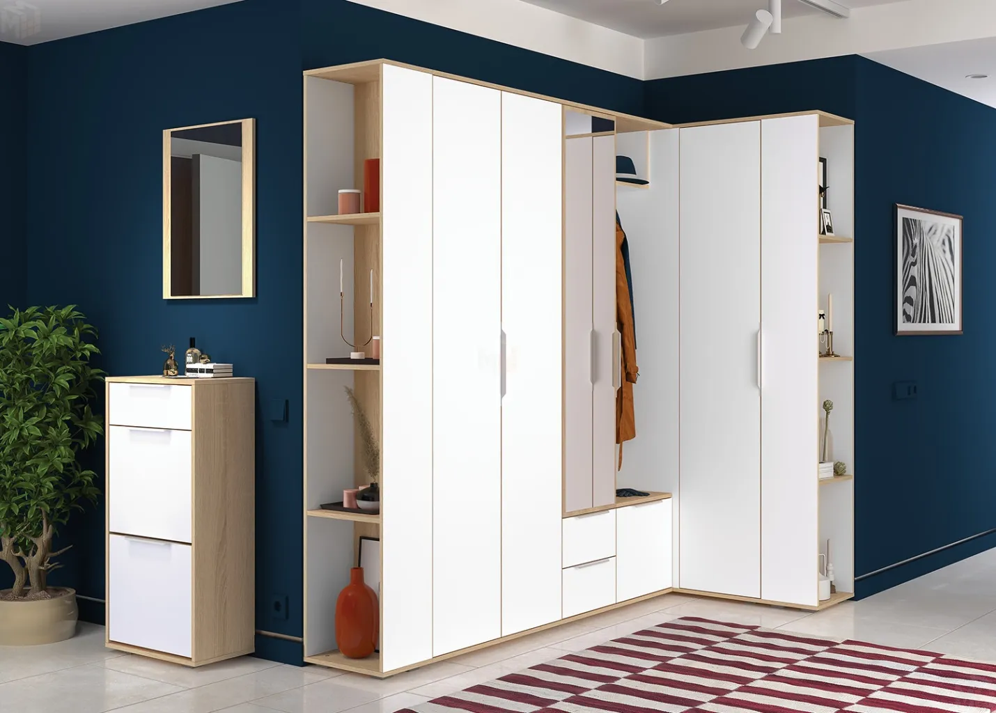 Верхний ящик - выдвижной. Два нижних - откидные для обуви.