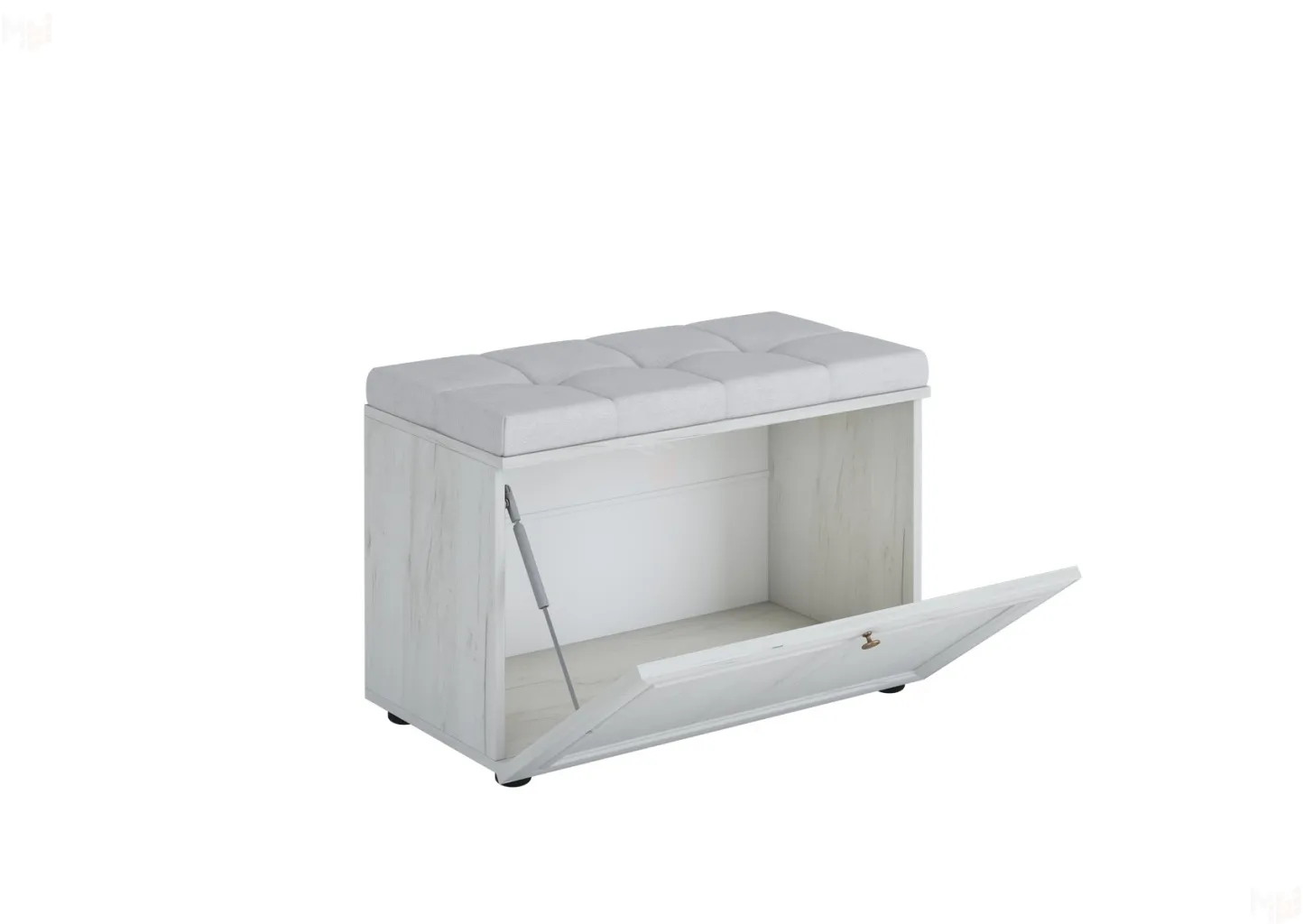 Тумба оснащена секретерным газовым лифтом. Сверху мягкий пуф