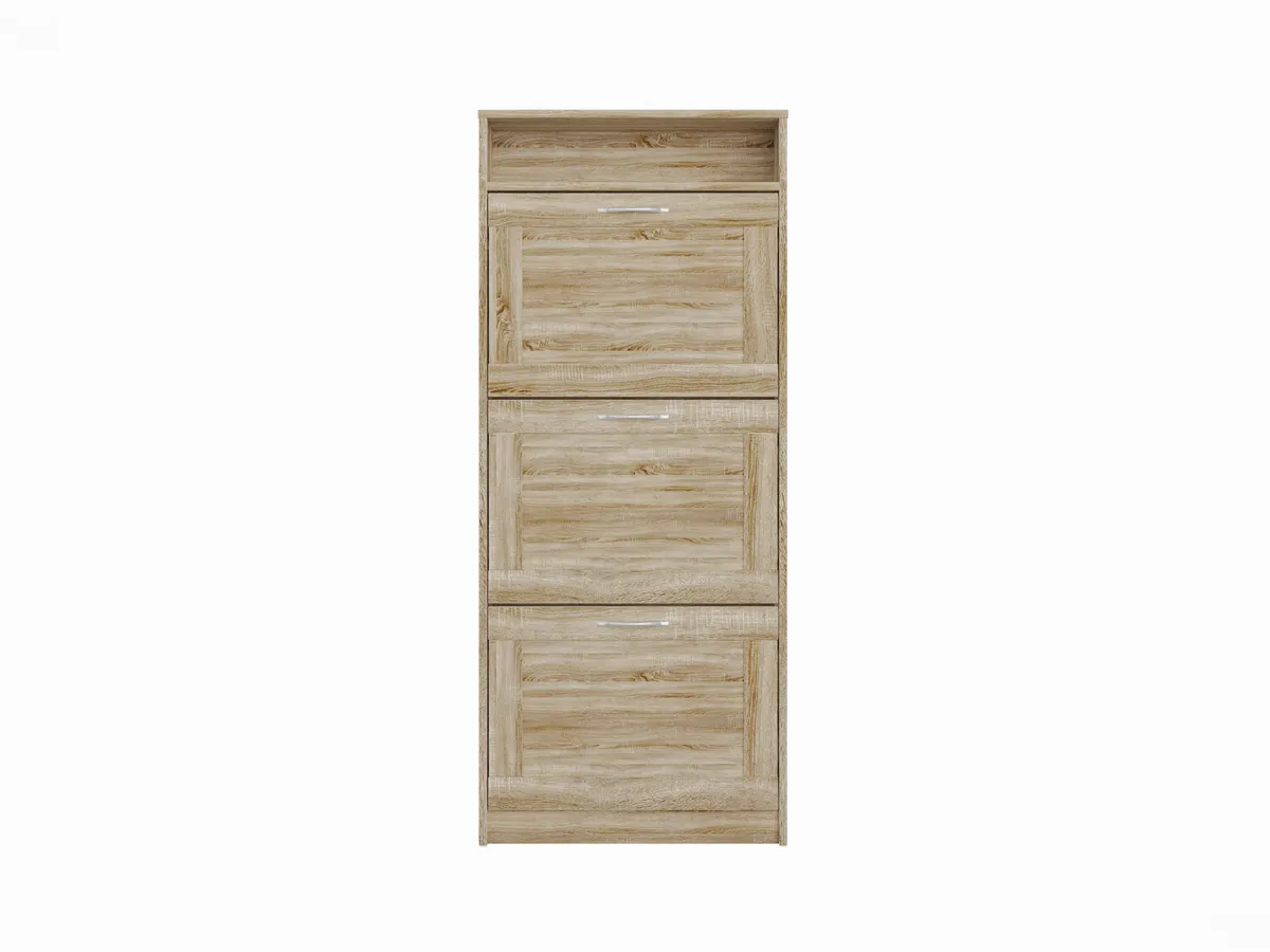 Корпус тумбы выполнен из КДСП цвета сонома, фасады сборные.