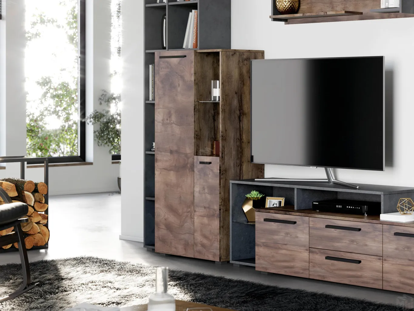 Данная модель имеет две двери, за которыми можно удобно разместить различные предметы обихода - от книг и журналов до памятных сувениров или семейных фотоальбомов. Наличие открытых полок позволяет держать под рукой необходимые мелочи, такие как пульт от телевизора или любимую статуэтку.