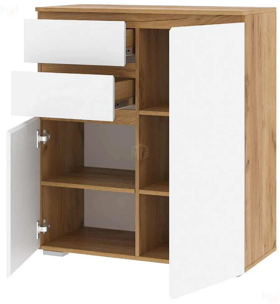 Тумба 2С2Я ГРЕТТА 2-створчатая с полками, с ящиками на направляющих полного выдвижения. Применение интегрированной ручки на фасадах делает модель стильной и безопасной – дверцы открываются за профилированные выступы. Фасады обработаны кромкой 1 мм. Черная регулируемая ножка-опора.