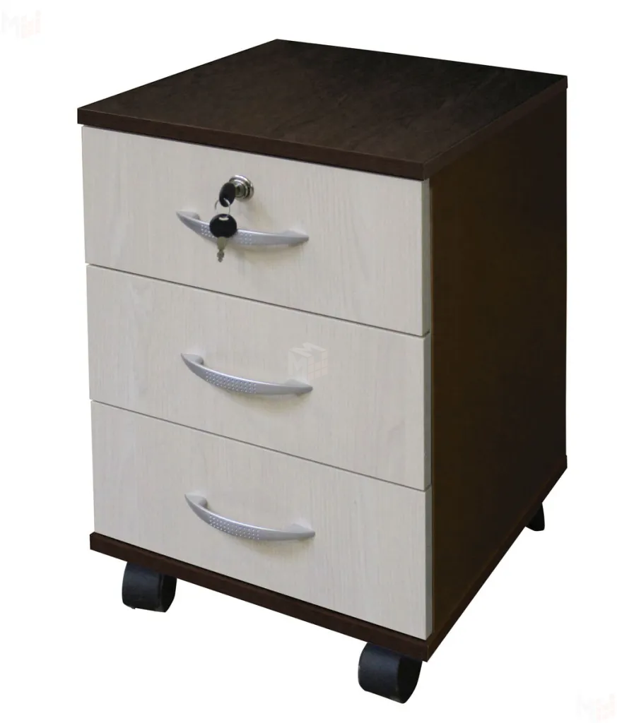 Тумба на колесиках с выкатными ящиками, верхний ящик имеет замок. Выполнена из ламинированного ЛДСП.