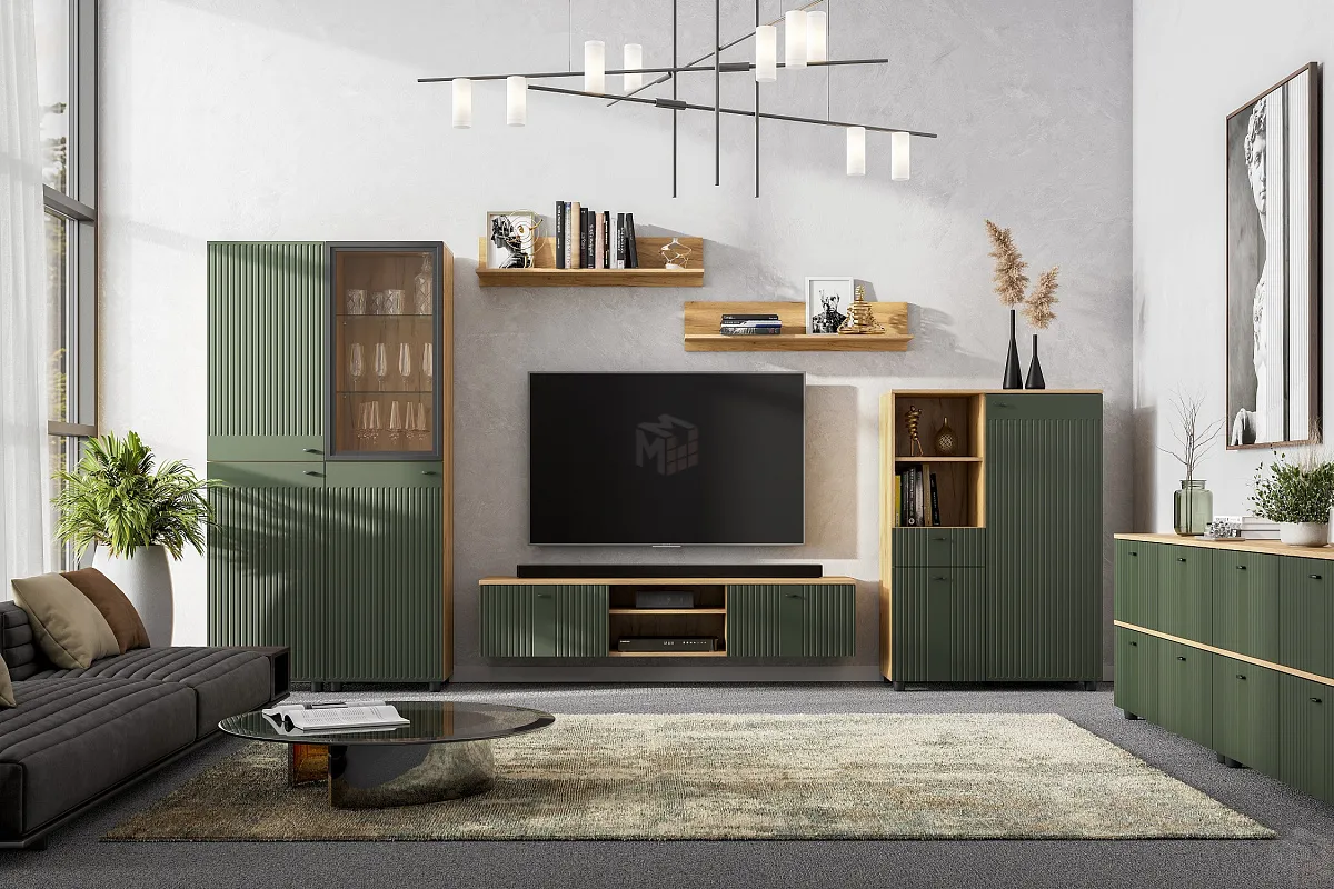 Тумба многофункциональная Милан Дуб Золотой/Олива Софт