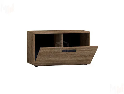 Небольшая тумба глубиной 389 мм поможет функционально обустроить прихожую в скандинавском стиле или стиле Лофт. За глухим откидным фасадом в декоре Дуб Табачный - 2 отделения. Регулируемые опоры компенсируют неровности пола.