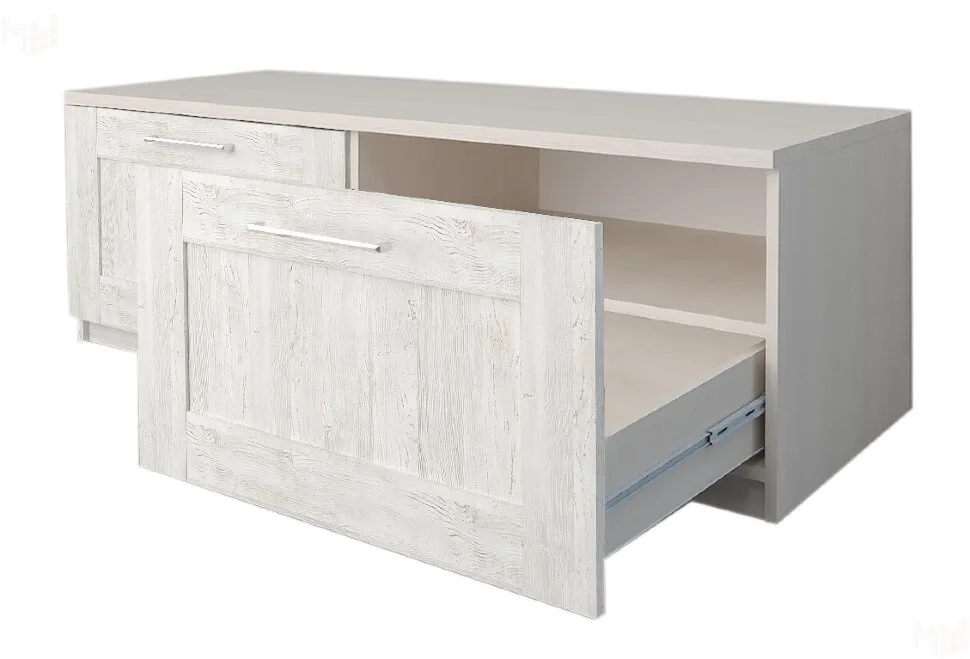 Тумба под ТВ оснащена двумя выдвижными ящиками.