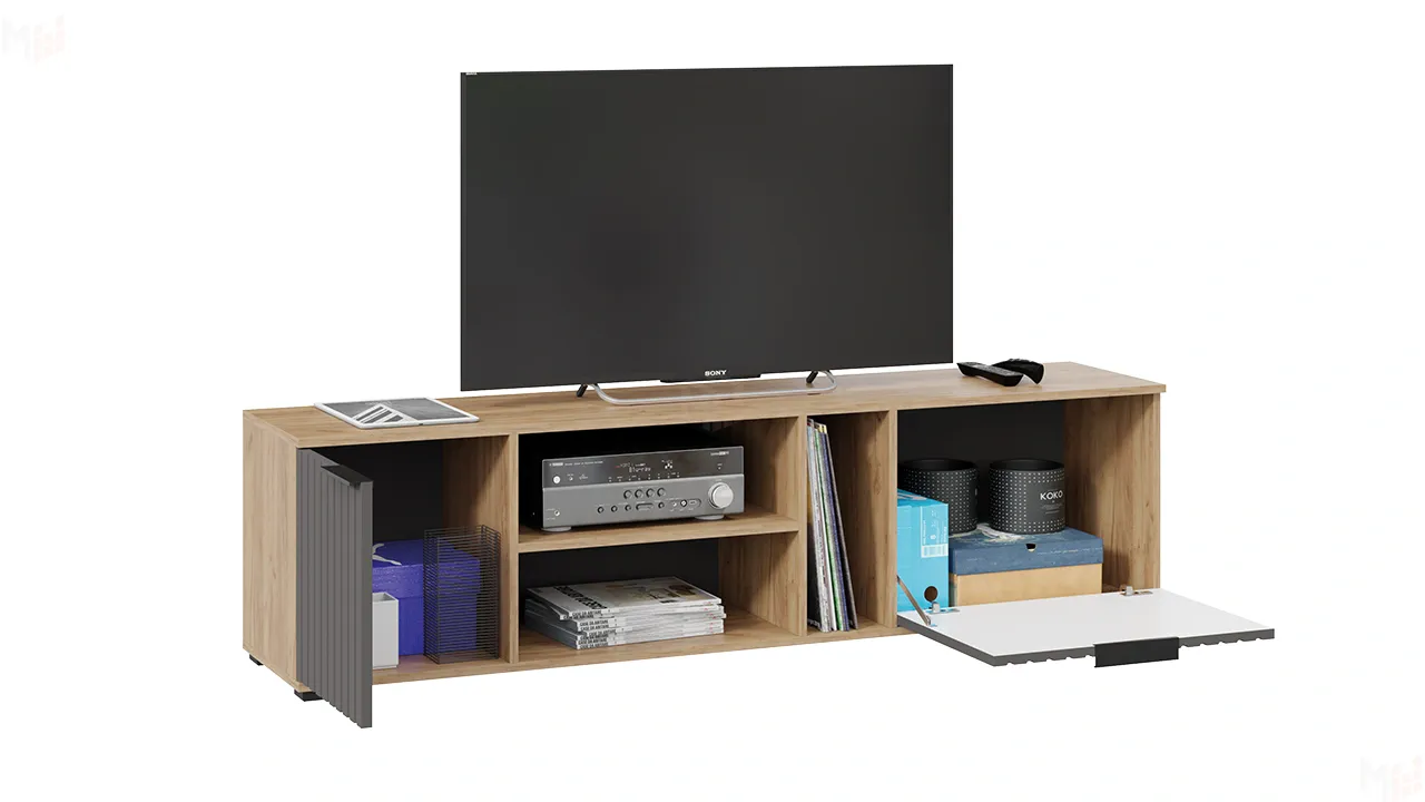 Тумба под ТВ Хилтон - 413.11 Дуб Крафт золотой, Графит матовый