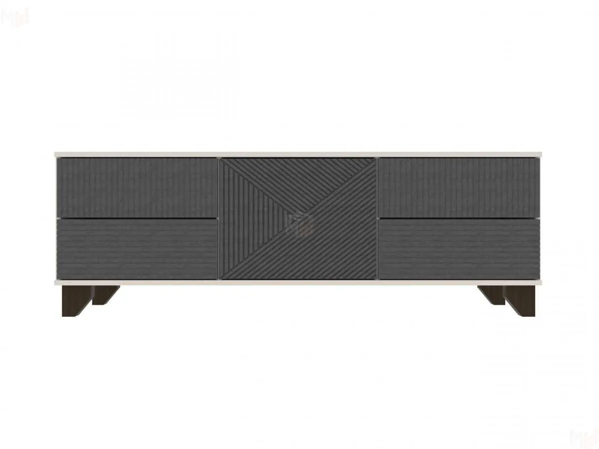 Тумба под ТВ предназначена для размещения телевизора, медиа-техники, личных вещей, предметов декора, поэтому имеет важное значение для гостиной. Данная модель оснащена боковыми выдвижными ящиками на шариковых направляющих полного выдвижения. Между ящиками располагается ниша с двумя полками, закрытая створкой. Для плавности хода створка закреплена на петли с доводчиками. В конструкции тумбы предусмотрен механизм открывания ящиков и створки «push-to-open». Фасад выдвижных ящиков оснащен ручками из массива дуба. Ножки изделия изготовлены из массива дерева и имеют регулировку по высоте. Возможно комбинирование расцветок корпуса и фасада. -