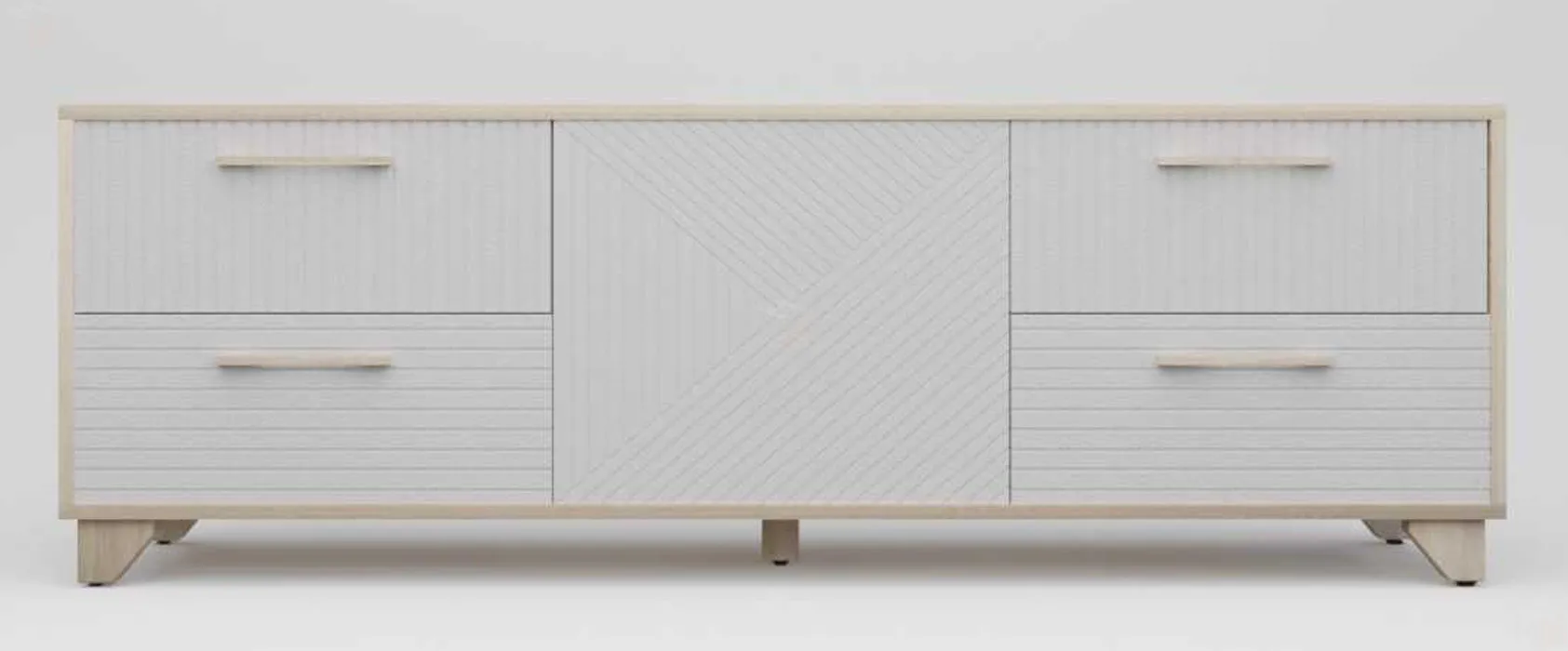 Тумба под ТВ предназначена для размещения телевизора, медиа-техники, личных вещей, предметов декора, поэтому имеет важное значение для гостиной. Данная модель оснащена боковыми выдвижными ящиками на шариковых направляющих полного выдвижения. Между ящиками располагается ниша с двумя полками, закрытая створкой. Для плавности хода створка закреплена на петли с доводчиками. В конструкции тумбы предусмотрен механизм открывания ящиков и створки «push-to-open». Фасад выдвижных ящиков оснащен ручками из массива дуба. Ножки изделия изготовлены из массива дерева и имеют регулировку по высоте. Возможно комбинирование расцветок корпуса и фасада. -