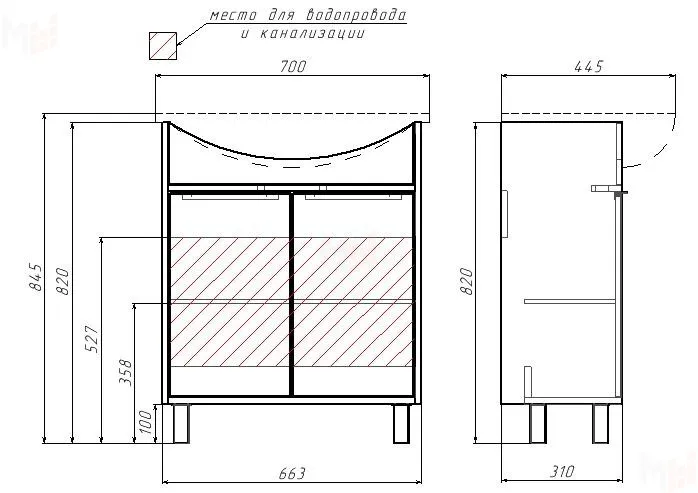 Тумба под умывальник "Амур 70" Prime без ящика Домино.