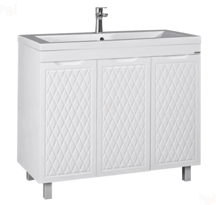 Тумба под умывальник "Andrea 100" 3D с корзиной для белья Домино
