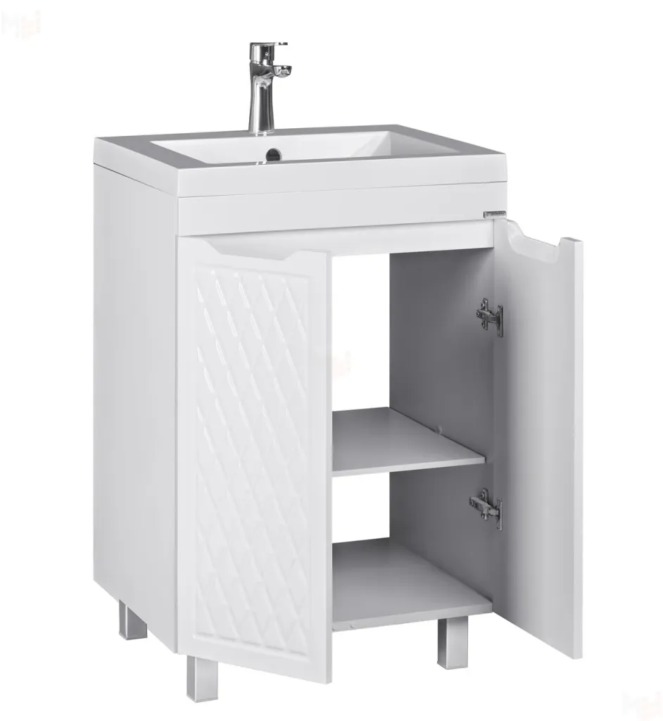 Тумба под умывальник 3D ANDREA 58 имеет две дверцы и полку посередине для комфортного использования.