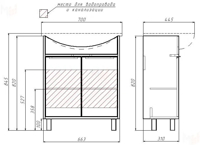 Тумба под умывальник "Балтика 70" Prime без ящика Домино.