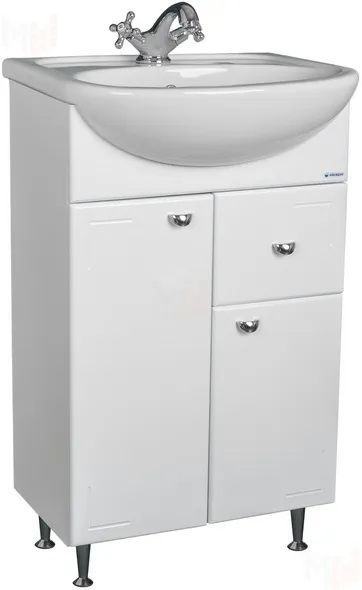 Под умывальник - Уют 50 (В комплект не входит). Габариты изделия указаны без учёта ножек, умывальника, упаковки и ручек. Поставляется в собранном виде. Фурнитура производства Германии. Фасады покрыты высококачественной ПВХ-пленкой.