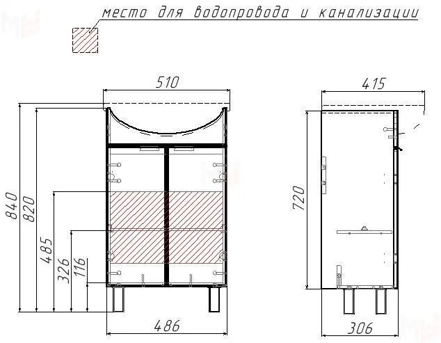 Тумба под умывальник "Элегия 50" Loko без ящика Домино.