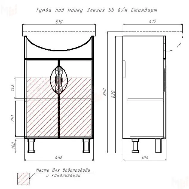 Тумба под умывальник "Элегия 50" Стандарт без ящика Айсберг.