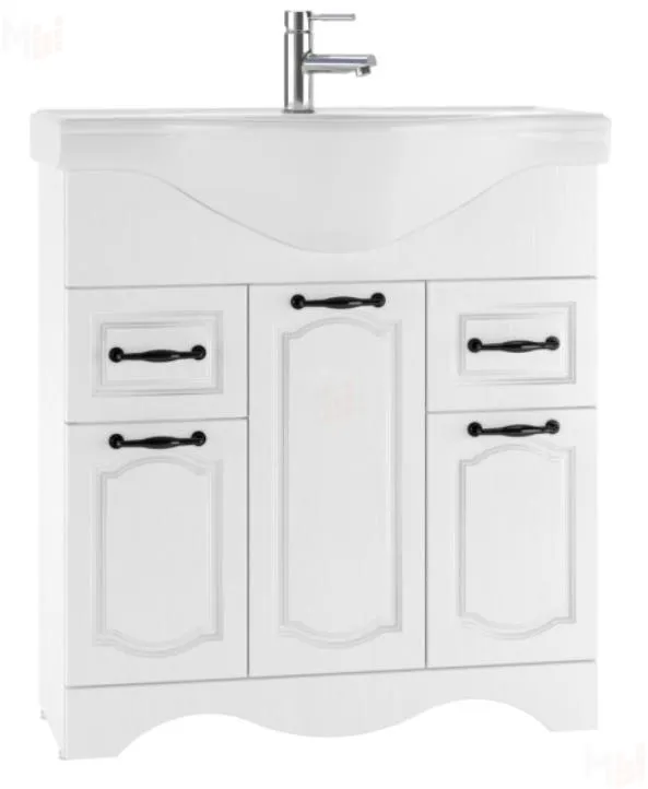 Тумба под умывальник "Классика 80" RICH Белое Дерево с двумя верхними ящиками Домино.