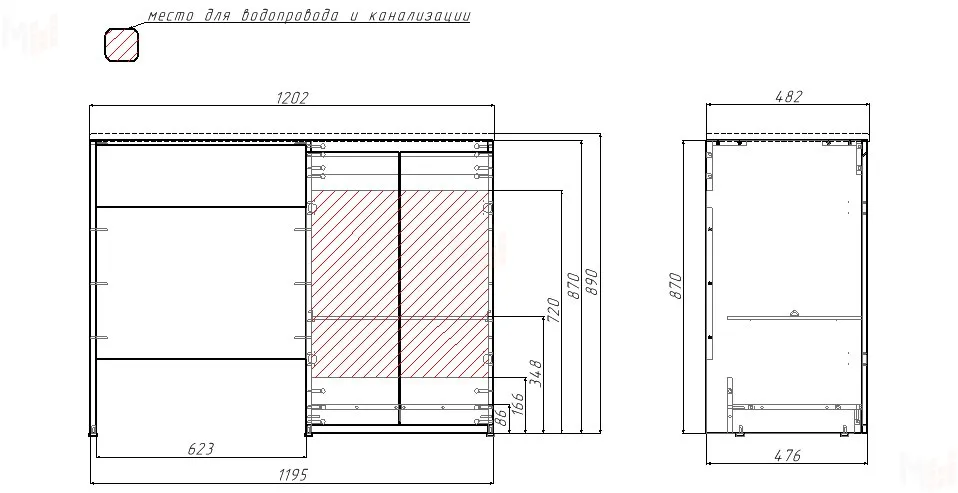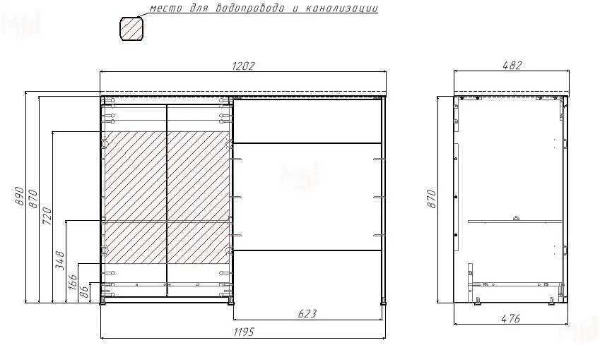 Тумба универсальная и изготавливается в правом и левом исполнении.