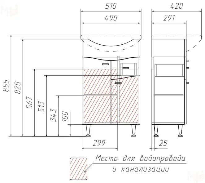Тумба под умывальник "Уют 50 Волна" с верхним ящиком В1 АЙСБЕРГ.