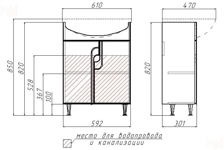 Тумба под умывальник "Уют 60 Лилия" без ящика Айсберг