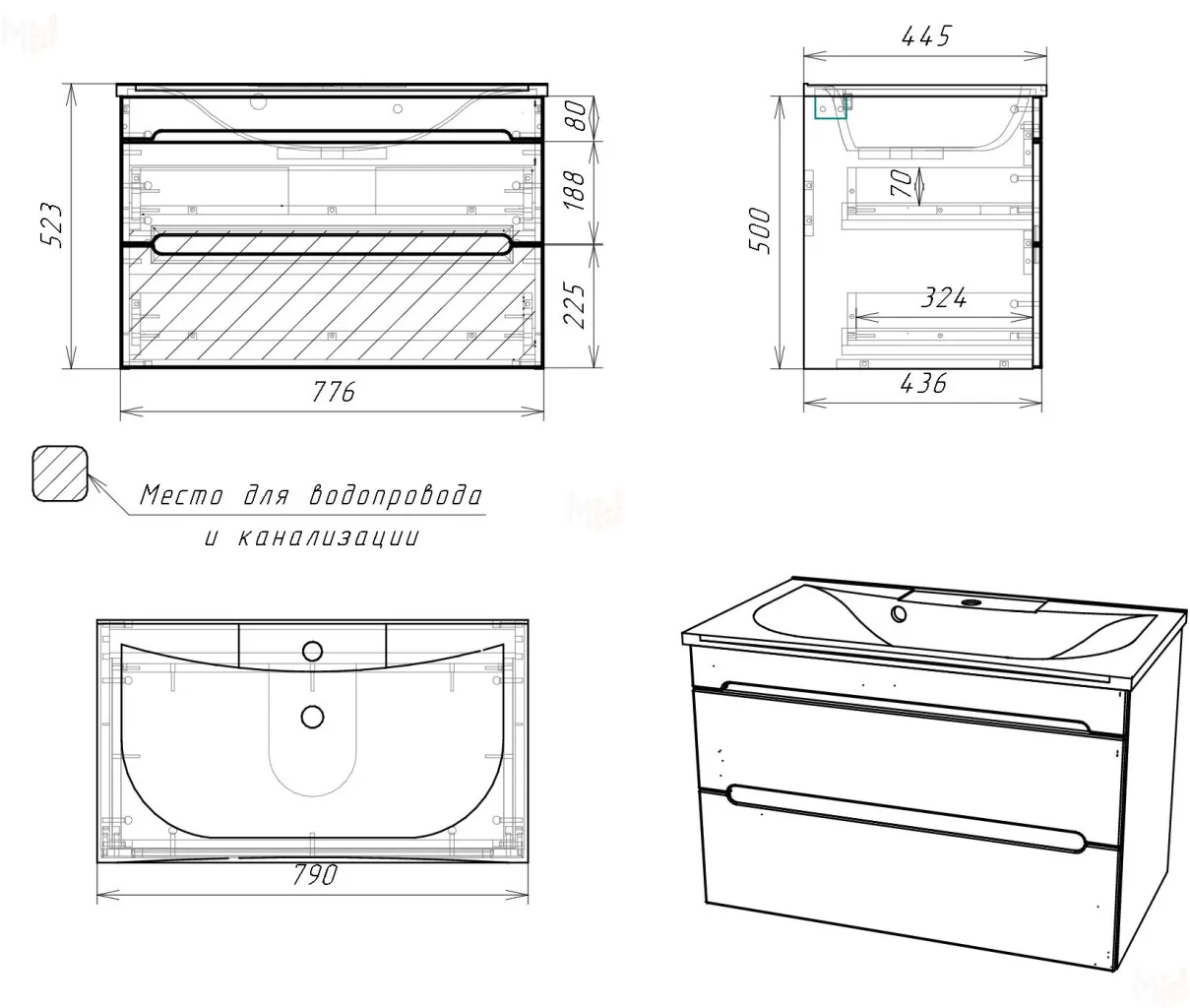 Тумба подвесная под умывальник "Elena 80" Maestro В2 Домино
