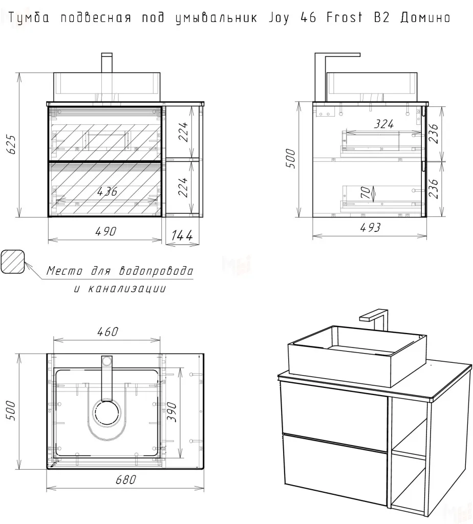 Тумба подвесная под умывальник "Joy 46" Frost 70 с двумя ящиками В2 Домино.